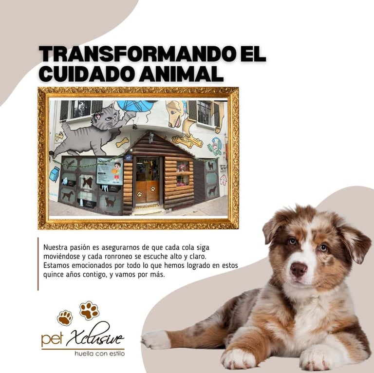 En PetXclusive, transformamos el cuidado de perros y gatos en la Ciudad de México, ofreciendo servicios exclusivos que van desde boutique, estética y spa, hasta atención veterinaria y guardería. Nuestro compromiso es brindar amor y cuidado personalizado a cada compañero de 4 patitas, asegurando que se sientan como en casa. Con 15 años de experiencia, somos el lugar donde el bienestar de tu peludito es nuestra prioridad.